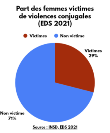 Selon un rapport d’analyse approfondie de l’Enquête Démographique et de Santé (EDS) de l’Institut National de la Statistique et de la Démographie (INSD), menée en 2021 et publiée en janvier 2025, la violence conjugale touche au moins29 % des femmes de 15-49 ans.