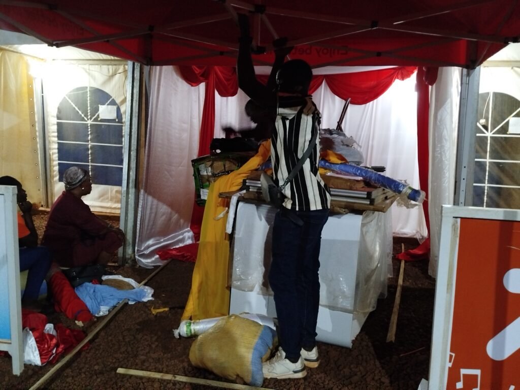 Un peu plus loin, Dame Millogo, visiblement fatiguée mais déterminée, ne cache pas les réalités du terrain : « On a presque fini, l’installation se passe bien… mais depuis le matin, nous n’avons pas eu le temps de manger. On s’attèle pour que tout soit parfait, comme en 2024 », informe-t-elle en souriant.